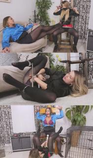 Carissa Dumond 和 JJ 都是赏金猎人,被派往同一个地方。Carissa 先发现了 JJ,决定把她绑在捆绑椅上,并在她嘴里塞上一个皮革口塞。现在 JJ 已经离开了,但过了一会儿,她决定用更羞辱的姿势铐住 JJ,露出她穿着连裤袜、裹着缎面内裤的丰臀。Carissa 不在的时候,JJ 带着一把藏起来的钥匙逃走了,并抢走了她的武器。哎呀。现在轮到 Carissa 被绑在另一把捆绑椅上,嘴里塞着口球。JJ 决定更进一步,对她的对手施展魔杖,Carissa Dumond and JJ are bounty hunters and sent to the same place. Carissa discovers JJ first and decides to get her restrained to a bondage chair and she puts a leather panel gag in her mouth. Now JJ is out of her way, but after some time she decides to put her into a more humiliating cuff position with her pantyhose and full bottom satin panty clad booty on display. While Carissa is away JJ escapes with a hidden key and grabs her weapon. Oops. Now it is Carissa’s turn to be bound in the other bondage chair with a ballgag stuffed between her teeth. JJ decides to take it a step further and uses the magic wand on her competition,