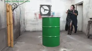 【中文JIM】TAG:油桶固定、后手吊缚、长筒渔网袜。哥特少女挣扎着,猎人把一块巨大的破布塞进她的大嘴,把拉管胶带封在她的牙齿之间,用胶带紧紧地割断她的嘴。她的胳膊肘在背后完全撞在一起,她无力阻止他。然后,他把她推过钢鼓,把她的脖子绑在鼓的另一边。她的腿伸开,缠绕在鼓上,用绳子绑在她纤细的脚踝上。然后,他把她的手腕紧紧地绑在一起,并把它们挂在头顶滑轮上的链子上。她尖叫着,乞求着,哭着说不出话来,然后手腕在背后高高地抬起,痛苦地扭动着肩膀。他把那个傻丫头独自留在那里,无助地伸到鼓上。Gothic Lydia struggles as the Hunter stuffs a huge rag into her big mouth and seals the pulls duct tape between her teeth and tightly cleave gags her with the tape. With her elbows slammed completely together behind her back she is helpless to stop him. He then pushes her over a steel drum and ties her neck down to the far side of the drum. Her legs are spread and wrapped around the drum and tied in place with ropes around her slender ankles. He then ties her wrists tightly together and attaches them to a chain hanging down from an overhead pulley. She screams, begs and cries into her gag as her wrists are then cranked up high behind her back, twisting her shoulders painfully in their sockets. He leaves the silly wench there alone and helplessly stretched over the drum.