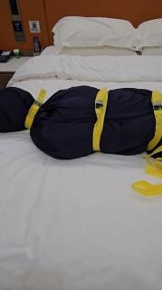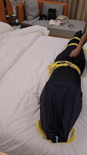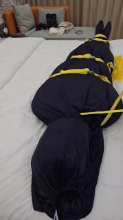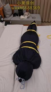 《小黑原创》装进丝袋再捆绑,让她在里面拿着棒棒自娱自乐,最后让她挑战自己解开。