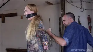 After Dinner our date continues. A twine box tie, an extremely tight gag, rough manhandling, face slapping, and clothing destruction are the ingredients in this part. outdoor,high heels, pantyhose, bondage rope, tape gag, mouth stuffing, face slapping, humiliation, ariel