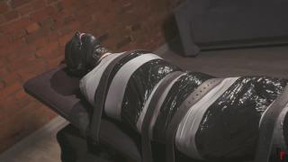 In this first clip, the Secret Model is fully mummified and secured to the bench. The only exposed parts of her body are her bare feet, which had a light, natural scent that I still remember. She wears a sensory leather hood and a ballgag, lying there in anticipation of what will happen next, fully immersed in the experience.