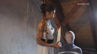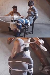 D小姐真是个不折不扣的绑人。看着她用一根又一根绳子把Pixie绑在椅子上,真是让人紧张刺激。最后,她还用一个又紧又紧的微泡胶带堵住了她的嘴。Miss D is a truly relentless rigger. It's very intense watching her tie Pixie to a chair with rope after rope. And at the end, there's a nice, tight microfoam tape gag.