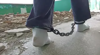 已购50次 片名:戴着脚镣在废墟里光脚和穿白袜散步