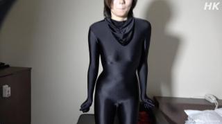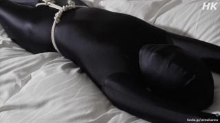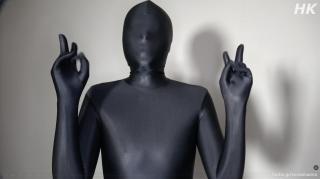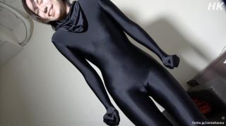 平泉脱下红色zentai,塞上强力吸震入体眺蛋后,再穿上黑色丝滑zentai。