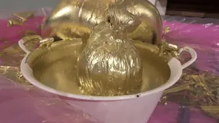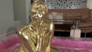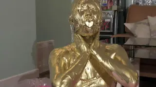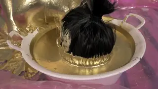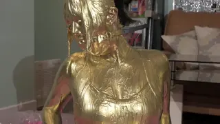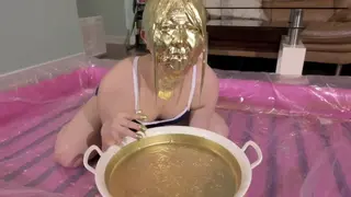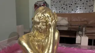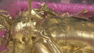 最后在金粉的包裹下进行之后脱下口球,把剩下的金粉全部倒在模特嘴里