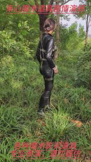 已购13次 片名:兰兰黑色胶衣贞操带套装,高跟靴,手拷脚镣,手拷拷腰带上,小树林行走