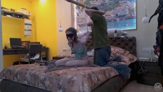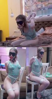 ALICIA TROUPE IN ESCAPE CHALLENGE AND PUNISHMENT - PART 2 - CHALLENGE AND BOUNTY - Alicia Troupe Tied Up With Ropes To The Chair, Tied Up Tightly in Strappado, Blindfolded and Gagged with Harness Gag and Try to Escape挑战的时刻到了。艾丽西亚坐在椅子上,双手被绑在身后,手肘和手腕处。两根绳子缠绕着她的胸部和手臂,将它们紧紧地拉在一起。另一根绳子穿过她的胯部,从背后绑在手臂上。她的双腿膝盖以上和脚踝处都被绑住,另一根绳子将她的双腿向上拉向双手,绳子的一端固定在椅子腿上。她的嘴里塞着一个系在安全带上的红色口球,眼睛被蒙住。艾丽西亚既不能说话,也不能看——她必须完全失明。伊万向女友解释了规则,并给了她20分钟的时间完全解开绳索。他设定好计时器,开始计时。倒计时开始了。女孩开始左右移动,试图松开绳子,但这并非易事——她的手臂和躯干被绑得很紧。而且她的胳膊和腿绑在一起,这意味着她必须先解开胳膊和腿,才能解开剩下的绳子。艾丽西亚的处境非常艰难:时间一分一秒地过去,但她至今还没能解开一根绳子。只有一根胸绳稍微松了一点,所以伊万决定让她轻松一点。他解开了一部分绳子,又换了一种方式重新系好。比赛还剩下九分钟多一点,艾丽西亚试着把绳子从手腕上滑下来。意识到在这个阶段这样做不太现实,她把手移到一边,试图解开绑在前臂上的绑带。在如此紧绷的姿势下,这需要很大的力气。她深吸一口气,用力扭动身体,不断尝试解开绑带。这个挑战让她觉得很有趣,但最终她还是把绑带从胳膊上解开了——尽管她离自由还很远。她像蛇一样扭动着,但绳子绑得很紧,每根绑带上都缠了好几圈。他们谁也不想轻易脱身。伊万轻笑一声,反问道她真的以为会这么容易吗?艾丽西亚则顽皮地摇了摇胸口。绳子没有掉下来,但伊万仍然欣赏着朋友挣扎着、如此性感地展现自己。到了某一刻,肘绳终于经不住她不断的动作,滑落到手臂上。但她的手腕仍然被绑着,现在绑得更紧了——而且艾丽西亚看不到背后发生了什么,这让挑战更加艰难。她想挣脱,却无能为力,尽管伊万指出她还有一些时间。艾丽西亚开始意识到,每动一下,她的力量都在逐渐消耗。她上气不接下气,获胜的机会也越来越渺茫——她的双腿和胯绳仍然被绑着,只剩下几分钟的时间了。又试了几次之后,她终于被从前臂滑落的绳圈缠住了,彻底没法挣脱。她再次深吸一口气,再次扭动身体,但不幸的是,手机计时器响了——时间到了。女孩没有得到奖励,反而要接受小小的惩罚。伊万把她从椅子上移到沙发上,然后把椅子拿开,坐在她身后,让她靠在他的胸前。他玩弄了一会儿她的[X_X],把她绑住的双腿拉近,解开了。他还解开了腰绳,但双手依然绑着。他从后面抱住她,把她抬起来,带到另一个地方,在那里接受惩罚。几分钟后,艾丽西亚坐在床上,双手被绑得更紧了——紧紧地勒在前臂和手腕处。作为惩罚,伊万决定对她进行严格的吊刑。他用绳子,把她被绑住的双臂猛地向上拉到身后,绑在一根竹竿上。艾丽西亚无法摆脱这个姿势,她感到肩膀紧绷,疼痛加剧,手臂也开始慢慢麻木。她无法抗拒——事实上,那种无助、脆弱和僵硬让她兴奋不已。她感到一丝沮丧,与其说是因为失败,也不在于事情的必然性,不如说是因为她对自己能力的过度自信。这种想法既分散了她对眼前折磨的注意力,也让她更加沉浸其中。时间一分一秒地过去。艾丽西亚已经感觉不到自己的手臂了;仿佛它们根本不存在了。她紧紧抓住这一切很快就会结束的想法——然后,几秒钟后,她听到了计时器的报时声。惩罚时间结束了。她感觉到自己的手臂被从悬挂中放回原位,前臂和手腕上的绑带松开了。伊万解开绳索,轻轻地把她放在胸前。然后,他摘下了口塞和眼罩……The time for the challenge had come. Alicia was sitting on the chair, her arms tied behind her back at the elbows and wrists. Two ropes wrapped around her chest and arms, pulling them tightly together. Another rope was threaded through her crotch and tied at the back to her arms. Her legs were bound both above the knees and at the ankles, pulled up toward her hands by another rope whose end was secured to the leg of the chair. In her mouth was a red ballgag attached to a harness, and a blindfold covered her eyes. Alicia could neither speak nor see — she would have to act completely blind. Ivan explained the rules to his girlfriend and gave her 20 minutes to completely untie herself and remove all the ropes. He set the timer and started it. The countdown began. The girl began shifting from side to side, trying to loosen the ropes, but it's not the easy task — the bindings on her arms and torso were very tight. And also her arms were tied to her legs, meaning she first had to free them before working on the rest of the ropes. Alicia was in a very difficult situation: the clock was ticking, but so far she hadn't managed to remove a single rope. Only one chest rope had slightly loosened, so Ivan decided to make things just a little easier for her. He removed part of the rope and retied it in a different way. With just over nine minutes left, Alicia tried to slide the ropes down from her wrists. Realizing this wasn't realistic at this stage, she shifted her hands to the side and tried to remove the straps holding the bindings around her forearms. In such a tight position, this required a lot of strength. She took a deep breath, twisted her body hard, and kept trying to reach the straps. The challenge amused her, but eventually she managed to slip the straps off her arms 
