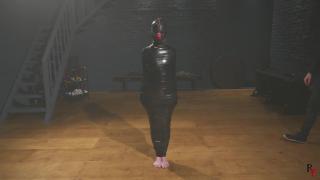 她裸露的脚底始终清晰可见,是她唯一露出的裸露肌肤。享受这独特的木乃伊化、悬挂和感官游戏的组合吧。In this long clip, submissive beauty Bora is completely sealed into tight black PVC tape, creating a glossy latex-like cocoon. The entire process is shown: she waits in a collar, her anticipation growing, before a tight black ballgag is placed firmly in her mouth.