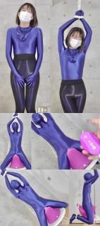 小姐姐先是在zentai外套了一件高叉连体泳衣,利用裆部的弹性固定一枚眺蛋。
