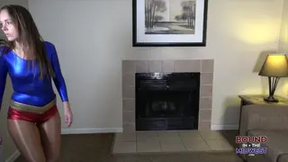 Ultra Girl come looking for the evil henchman. She is grabbed from behind and brought down to the floor is is tied up and ballgagged.  She struggles on the floor trying to get free but her powers her belt has been removed and she trying to get loose the henchman teases her by getting het belt close but not close enough for her to grab he decides to have move fun with her by untying her ankles and removing her boot and playing with her shiny pantyhose feet and reties the ankles and and more rope for a hogtie.