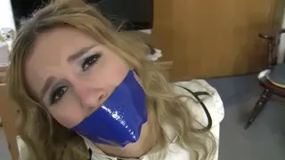 Anchorwoman Blair Blouson been working on the missing female journalists case for a while and just when she think she got the upper hand and report it to the whole world. the lights go out in the studio and all you hear is a scream and a spinning chair when the lights come back on. we find our female journalist bound and gagged and blindfolded and tied to a chair while the evil one plays with the hostage and when he grows tired of her predicament he gets taped up in a hogtie what will happen to her and all the missing reporters?