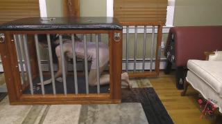 Before getting back in, she tried to find out how to lock the cage, mostly to ensure she didn't become trapped. Since the lock didn't seem to work, she climbed in and set to cuffing her legs and wrists together. Faith couldn't help but smile behind her gag as she playfully pulled at her self-imposed restraints. BANG! Startled by the sound, she snapped out of her revery, trying to figure out what it was. Only when her foot pressed on the door did she realize what happened. A few kicks and a shake of the bars confirmed her worst fear. Unknown to her, she had activated the magnetic lock once she went inside, but the door was just out of reach to make contact. A shift in her bondage was all that was needed to make it slam home. As fantasy turned to hard reality, Faith tried everything to break free but nothing budged. Defeated, she laid down and accepted her sentence.