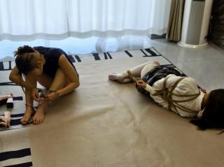 片名:【悦己工作室】片名:姐妹劫难~报复 小恩和小洛被手铐,脚铐,日式捆绑后,小恩挠小洛的白袜脚心,二人努力脱缚,最后学习五花捆绑