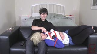 视频内容包括:胶带堵嘴、固定口塞、海绵堵嘴、绳索捆绑、捆绑带、爱抚、袜子、打屁股、蛙式捆绑、鸡式捆绑、戴袜子的手、连指手套、跳跃、失误、挣扎、呻吟、堵嘴Video includes: Tapegag, fixomullgag, spongegag, rope bound, boxtie, fondling, socks, spanking, frogtie, chickentie, socked hands, mittens, hopping, bloopers, struggling, moaning, gagtalk