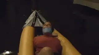 【中文born】在一个被水淹没的地下室里,她被放置在一个充气小船上。她害怕船会翻过来。水很恶心,被绑起来总是有溺水的危险!他说她太吵了,然后他绑住她的脚踝,这样她就不能下船,当他再次把她留在那里时,她就试图逃跑,尽管她不想下船。A man makes a bound and gagged JJ get into a rubber raft in a creepy flooded warehouse. He’s holding her for ransom and he couldn’t have picked a creepier place! She is terrified that the boat might dump over. The water is disgusting and there is always the threat of drowning while tied up! He drags the boat around the basement and finally ties her off to a pole and leaves her down there with her elbows tied, wrists tied and cynched to her and ballgagged. When he returns he puts vetwrap over her ballgag. He says that she is being too loud, and then he ties her ankles so she can’t get out of the boat and try to run away when he leaves her there again, tho she doesn’t want to get out of that boat. Who knows what lurks in that water. When he finally returns he says that he has good news, her husband has come through with his money. He unleashes the raft from the pole and he drags it back across the building…