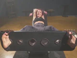 In this clip, she's locked in securely, her soft bare heels exposed and waiting. Venera is not quite sure what to expect - there's a hint of nervousness, a touch of shyness, and a spark of excitement in her eyes.