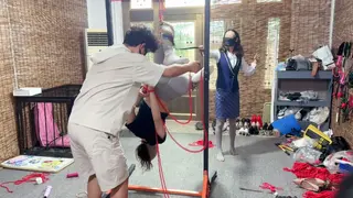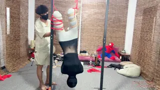 小姐姐被吊倒起,手臂简易直臂,拉至上方,身穿灰色瑜伽裤,白色棉袜,黑色短袖。黑色丝袜包主上半身,丝袜的另一条腿缠绕脖子难以呼吸,女主用鞭子抽打小姐姐的下T,大腿,P股,小姐姐痛苦的哀叫着,将小姐姐固定好后,慢慢的脱下白色棉袜,露出性感的脚趾,女主对小姐姐说好想看你尿裤子的样子,用ZD棒把你振到尿裤子,倒掉会让你的[X_X]顺着下T流到你的皮股上,腰上,后背上,说不定还会流到你的嘴里,让你尝尝自己的[X_X]。小姐姐羞耻不已,不断地摇头,但是女主只想看到小姐姐尿裤子的样子,ZD棒开到最大,放在下T,不断刺激着,小姐姐大叫一声,裤子上渗透出了[X_X],看来喝的水还不够多,等下次,就让她自己的[X_X]布满全身......