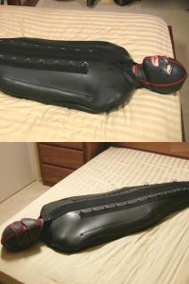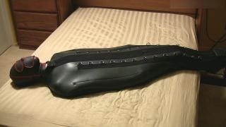 乔安娜的双手空着,可以帮我戴上头套,确保她的鼻孔与鼻孔对齐,然后她就可以进入性爱袋,好好待上一段时间了。我给她戴上眼罩和口塞,让她完全失去知觉。我让她的嘴巴没有塞住,以便观察她独自一人时会有什么反应。就像大多数第一次体验性爱袋和头套的女士一样,她很快就进入了亚空间。我让她尽情享受,就像在一次没有剧本的私人会面中一样,但当然也会不时地观察她的状态。我不得不看着时钟,因为她那天下午还有另一个模特约会,所以我不能让她整天都像个囚徒。我用挠痒痒打断了她在亚空间的[X_X],并开始释放她,但她拒绝了。因为她在里面太开心了,我决定用海绵球塞住她的嘴,并重新戴上口塞,以增加她的无助感。观众能听到,紧绷的橡胶头罩加上口塞板就能很好地抑制囚犯的声音,但捆绑爱好者通常觉得束缚力不够。最后五分钟对某些人来说可能比较拖沓,因为乔汉妮几乎没有动静,她只从头罩后面发出几声吱吱声,可能是因为我几次穿过远处的门缝引起的。然而,在剪辑真实的、非剧本场景时,我更倾向于站在捆绑爱好者的立场上,他们欣赏并被一个在无助而自愿地被束缚时依然安然自得的女人所激励。Johannie's hands are left free so she can help me with the hood placement to ensure her nostrils are lined up with the nose holes, then it is into the sack for a nice long stay. I snapped on the blindfold and gag panel to complete her sensory deprivation. I left her mouth unstuffed to access what her reactions would be while left alone like that. Well, like most ladies experiencing a first-time sack and hood job, she fell into subspace quickly. I left her to enjoy herself, just as I would in an unscripted private session, but of course monitored her well-being from time to time. I did have to watch the clock as she had another modeling appointment that afternoon so I could not keep her prisoner all day. I interrupted her subspace pleasure with a tickle and began to release her but she said no. Since she was so happy in there, I decided to stuff her mouth with a sponge ball and replace the gag panel to increase her helplessness. The tight rubber hood alone with the gag panel in place does a pretty good job of muting a prisoner's voice, as viewers will hear, but bondage people usually feel there is never enough restraint. The last 5 minutes may drag for some as there is little movement on Johannie's part and she only lets out a couple of squeaks from behind her hood, possibly prompted by my moving through remote doorways a couple of times. However, when it comes to editing real, unscripted scenes, I'd rather err on the side of bondage fans who appreciate and are inspired by a woman still and content while helplessly and willingly restrained