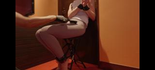 彼女の手首と足の指に手錠をかけられた時、彼女の足の裏と脇の下はかゆいです。