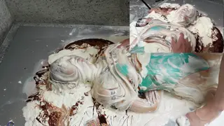 被各种物质包裹的她,仿佛变成了一件件可食用的艺术品。