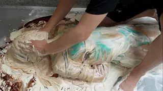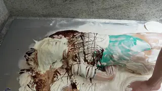 看到她无助地被弄脏并涂抹在材料上,