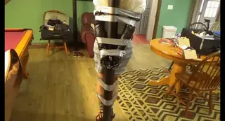 【Joy伪娘】芙尼从未想过会在这个男人的地下室里把他完全绑在杆子上过夜。蒂芙尼穿着6英寸的高跟凉鞋、透明连裤袜、格子迷你裙、白色褶边衬衫和歌剧长度的皮手套,这可能太性感了。在相亲时穿成这样可能不是个好主意。这个男人喜欢他无助而安静的臀部,因为我们看到蒂芙尼完全被胶带绑在杆子上。脚踝、膝盖和手腕被胶带绑住。嘴巴被三重胶带封住。在她上半身周围的三个地方,在她的腿和杆子周围的三处都被固定在柱子上。这是蒂芙尼作为陌生人俘虏的挣扎。Here is the video, starring Tiffany Fine, that documents Tiffany's blind date captivity in bondage with a man she deosn't even know, entitled "Blind Date Bondage". Tiffany never expected to spend the night fully tied and secured to a pole in the man's basement. Tiffany is dressed, maybe too sexy, in 6" high heeled sandals, sheer pantyhose, a plaid mini skirt, a white ruche blouse and opera length leather gloves. Maybe not such a good idea to dress like that for a blind date. This man likes his gurls helpless and quiet, as we see Tiffany fully tied and gagged in duct tape to the pole. Ankles, knees and wrists tied with duct tape. Mouth triple duct taped. Secured to the pole in 3 places around her upper body, and in 3 places around her legs and the pole. This is Tiffany's struggle as a stranger's captive.