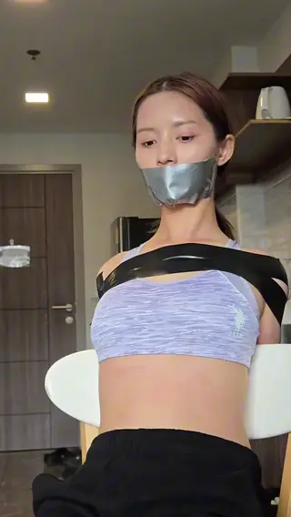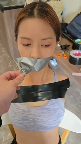 【Tman】【Fah】亚洲女孩嘴上贴着灰色胶带