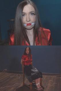 贾斯敏工作繁忙时,突然被要求去仓库开会。她被绑在椅子上,嘴里还塞着一条细布条,挣扎着想要挣脱。即使穿着人字拖也无济于事。Jasmine is working away when she asked to go to a meeting at a warehouse. Tied to a chair and gaged with a thin strip of cloth, she struggles to get free. Wearing flip flops doesnt help.
