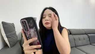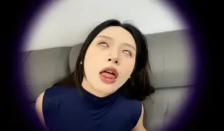 的看着手机,随后开始进入状态,昏昏欲睡,眼皮再次不断打架,最终女主承受不了,双眼自觉的翻起白眼,嘴里说了一句“完了,又要进入催眠状态了”然后手机落在一边,双腿m字开腿坐在沙发上,舌头吐出来,翻白眼,双手比起剪刀手。