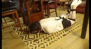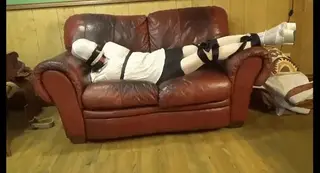 【Joy伪娘】她的腿和手腕被黑色领带紧紧地绑在地下室的沙发上。连着兜帽,塞在她的氨纶兜帽下。安静、无助、感官剥夺,然后受害者被转移到地下室的地板上,胡德被移走,现在被一条用黑色电工胶带固定的领带堵住了嘴。This is the tale of a damsel taken captive in her home by The Necktie Nabber, a villain whose calling card is the use of neckties to bind and gag his victims. The tale of a bondage model returning home after doing a photo/video shoot, only to be grabbed and captured by The Nabber. Legs and wrists bound tighly with black neckties on the couch in her basement during the first half of this video. Hooded and gagged under her spandex hood. Quiet, helpless and sensory deprived. In the second half of this video, the victim has been moved to the floor of her basement, Hood removed and now cleave gagged with a necktie, secured with black electrical tape. And now tightly and strictly hogtied with another black necktie. Will the model escape, or will she reamin helpless long after the Necktie Nabber is long gone!