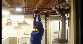 【Joy伪娘】她发现自己陷入了用绳子绑在椽子上的困境。她的腿在脚踝和膝盖上下都系上了拉链。蓝色胶带缠绕在她的手臂和嘴上,多层。她挣扎着逃跑,但不久之后,她的裙子被拉开拉链,露出了内衣,包括一个匹配的蓝色蕾丝胸罩和非常紧的紧身胸衣,让蒂芙尼对她的俘虏感到羞辱和尴尬。好姑娘!Tiffany Fine makes her first appearance on Transformed By Bondage in July, with the full video of "Strung Up And Exposed". Poor Tiffany has somehow managed to get herself captured and transported to the back room in a basement in a house just outside of the city. She is dressed in what some might consider an outfit that she deserves to be taken in. Blue 4" spiked heel slingback heels, Latex back seamed stockings, blue dress, and blue silk gloves. She finds herslef in the predicament of being strung up to the rafters with rope. Her legs zip tied at the ankles, and above and below her knees. And blue duct tape wrapped around her arms and over her mouth, multi layered. Her struggle to escape ensues, but soon after, her dress is unzipped, exposing her undergarments, consisting of a matching blue lace bra, and very tight corset, exposing Tiffany to humiliation and embarrassment to her captor. A great struggling scene from a very good damsel!
