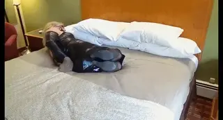 【Joy伪娘】她穿着黑色皮裙、透明连裤袜和4英寸坡跟鞋。她的双手被包裹在背后的透明长筒袜中,手腕被拉链绑住。她的脚踝和膝盖也被拉链绑着,嘴巴被宽大的黑色电工胶带封住,以保持安静。她一个人挣扎了一段时间。当我回来时,我觉得她活动太多了,所以慢慢地用保鲜膜把她包起来。首先是她的小腿,然后是她的大腿。最后,当我在她支付的房间里放松时,她的上半身大部分都被保鲜膜包起来。她不知道她最终会被捆绑、塞住嘴,并被包裹在自己的房间里。And now for the much requested full video version of Tiffany Fine's very popular scene, "That's A Wrap!". This full video combines both Part I and Part II that I previously released on Transformed By Bondage. Tiffany has been taken captive in a hotel room, by me, by a complete surprise. She is in a black leather dress, sheer pantyhose, and 4" wedge heels. Her hands are encased in a sheer stocking behind her back with her wrists zip tied. Her ankles and knees are also zip tied, along with her mouth sealed with wide black electrical tape to keep her quiet. She is left alone to struggle for awhile. When I return, I decide she has too much feedom of movement, so slowly I wrap her in plastic wrap. First her lower legs, then her upper legs. And finally, most of her upper body wrapped in plastic wrap, as I relax in the room she paid for. Little did she know that she would end up tied, gagged, and wrapped in her very own room. I guess "That's A Wrap!".