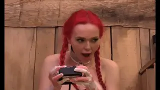 【挤奶系列】Jasmine被发现在谷仓里玩这台振动机器,她太可爱了!你能相信那些巨大的乳现在正在哺乳吗?现在Jasmine还有很多事要做,我们需要把她留在这里一段时间!!We got another result!! Milk is starting to flow from Jasmine James’ udders! This is such good news, and it shows that every HuCow can be producing, if you just do enough sessions with enough pressure and stimulation. We milked Jasmine HARD this time. The red cow milker on full power, with an added Sybian for stimulation. Well, we weren’t planning on using the Sybian, but Jasmine was found in the barn playing with this machine so we used it in the session (but on a much higher setting). Jasmine is so cute! Can you believe those huge udders are now lactacting? There is so much more to do with Jasmine now, we need to keep her here for a while!!