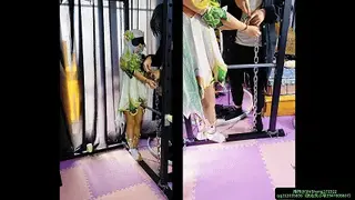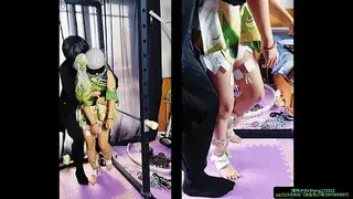 已购44次 片名:小草神的踮脚罚站!!!几乎只能脚趾着地,双腿颤抖,身体的其他重力都压在双腿之间的铁棒上,还要被狠狠的电击!!