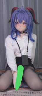 黑丝OL娃娃戴着阳锁,菊花里塞着假丁,用丝袜的弹性固定住。