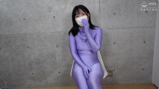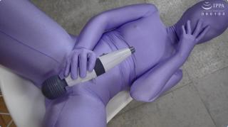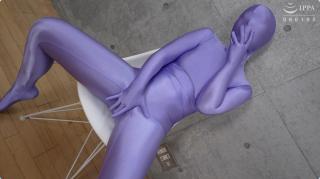 小姐姐穿着紫色光泽丝滑zentai,先是自己自摸发骚。