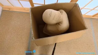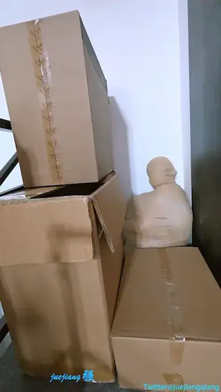 小玖绷带全包 小玖以抱膝姿势全包 之后放进一个小纸箱里面 被当成货物运输···.