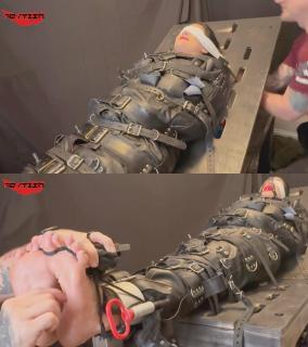Equipment: "Tickle Table" (version.2.0), leather body sleeve, additional restraints, tickling tools, blindfold, ball gag harness.