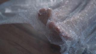 辛苦工作了一天后,女孩拆开一个包裹,正要扔掉包装膜,却不小心把它捏在手里。泡泡开始爆裂,让她陷入沉思。回家的路上,她想好了今晚该如何度过。泡泡在她迷人的双脚下欢快地爆裂。她意犹未尽,于是买了一卷气泡膜,做了个袋子。她钻了进去,却在袋子上装了个真空泵……After a hard day at work, the girl unpacked a package and was about to throw away the packaging film. But she accidentally squeezed it in her hand. The bubbles began to pop, plunging her into a meditative state. On the way home, she came up with a plan for how to spend the evening. The bubbles merrily popped under her charming feet. Wanting more, she bought a roll of bubble wrap and made a bag out of it. She climbed into it, but not before attaching a vacuum pump to the bag...