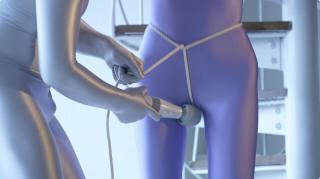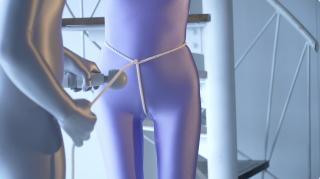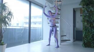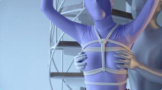 随后小姐姐被胸缚,双臂吊起,强制站立,裆部固定快乐棒。
