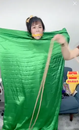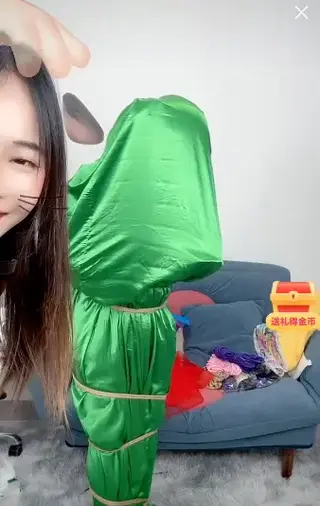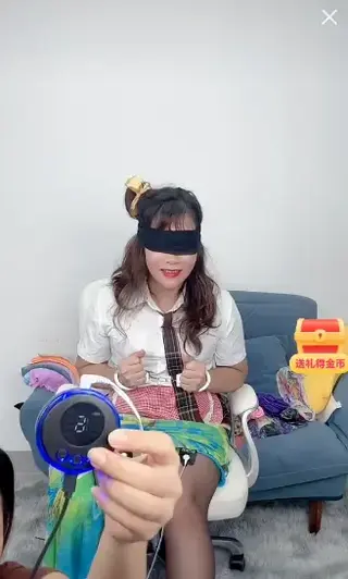 描述:鱼糯糯 丝绸全包加电击器,双人主播游戏,封嘴装袋电击惩罚