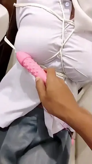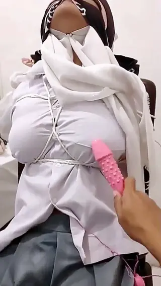 Indonesian School Girl in Bondage, This girl who is still wearing her school uniform is tied up and stimulated with a vibrating dildo