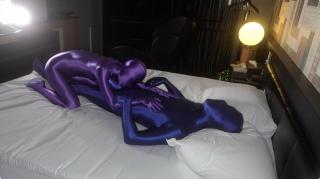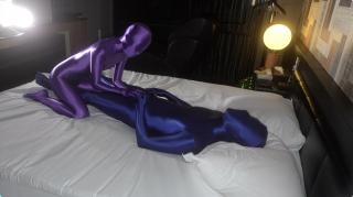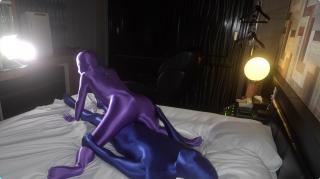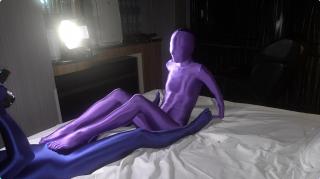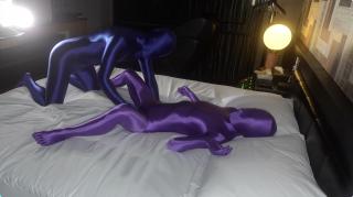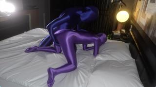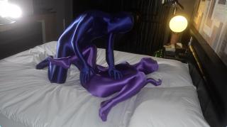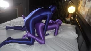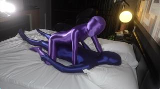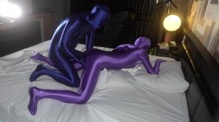 ACCO穿超丝滑zentai和男伴多姿势多体位激情贴贴,最后又被男友玩的尿了一裤裆。