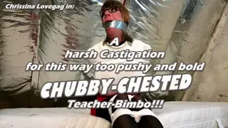 Chrissina is the homeroom-teacher of Jessica, a student, wich is missing in school since a few days. Now the busty teacher has decided to visit Jessica at home but she only meets her Stepdad. After Chrissina tried to persuade him to see Jessica and he doesn't agree, the bold teacher threats with harsh consequences. Now she can enter the flat only to become suprisingly XXXX down! Some time later the sweatered beauty awakes at a strange place, obviously the attic of the house. But the voluptous gurl was strict tied up on hands and legs and also gagged with a tight otm-gag! After returning to full consiciousness, the restricted woman struggles and moans hopless until her captor shows up. He explain her that she's only punished because of her bold snooping and that she should stay for a while now in her predicament. Of course Chrissina's very upset and try to fight against her cruel captor, but soon the rebellious, buxom bimbo is strictly more bundled up, brutally tapegagged and packed into a uncomfortable hogtie and can only guess how long she will be captured in this prediacment!