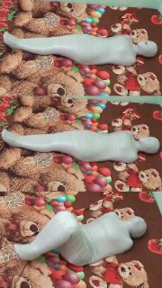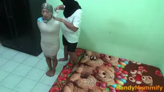 This girl's body was wrapped helplessly with white duct tape on the bed.