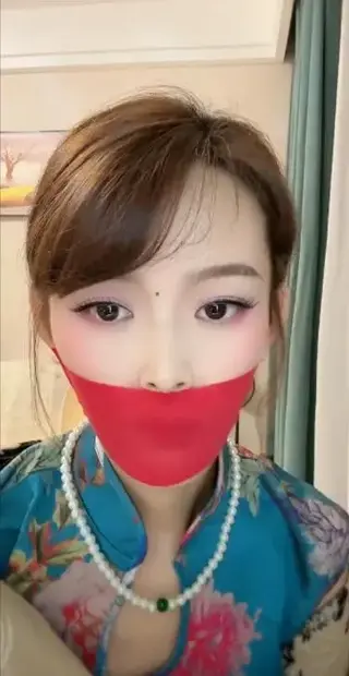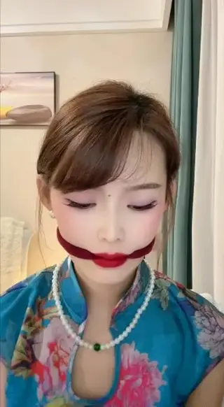 描述;堵嘴直播08:旗袍,勒嘴,蒙嘴,封嘴,覆面口球,捆绑等,喜欢的请大家多多支持一下吧