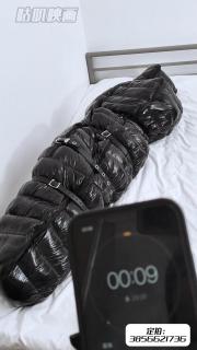 已购99+次 片名:【咕叽映画】《羽绒服堆叠逃脱游戏 002》 胶衣、乳胶手套、羽绒服、睡袋、闷热、挣扎、皮带、束缚逃脱、拘束放置