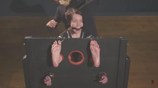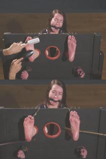 这种刺激的组合让她身心俱疲,Lada 达到了极限,在如此激烈的时刻流下了几滴眼泪。尽情享受吧!In this clip, Lada is securely placed in an extra-large set of stocks, sitting comfortably with her arms and legs positioned through custom openings. Together with my colleague, we apply a unique mix of sensations to her bare feet - alternating between tickling and more intense impact play - bastinado.