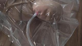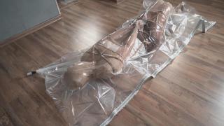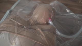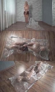 The girl threw out her old tights and stockings in favor of new nylon ones. The old tights decided to teach her a lesson and attacked her from behind. Then they stuffed her in a vacuum bag to make her feel like a discarded object.