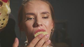 To add a twist, a pair of scissors is placed nearby - close enough to see, but far enough to reach. Venera wriggles, twists, and tries to reach them with all her strength, but her bonds are simply too strict. Every movement, every attempt, only makes the ropes tighten more around her body.